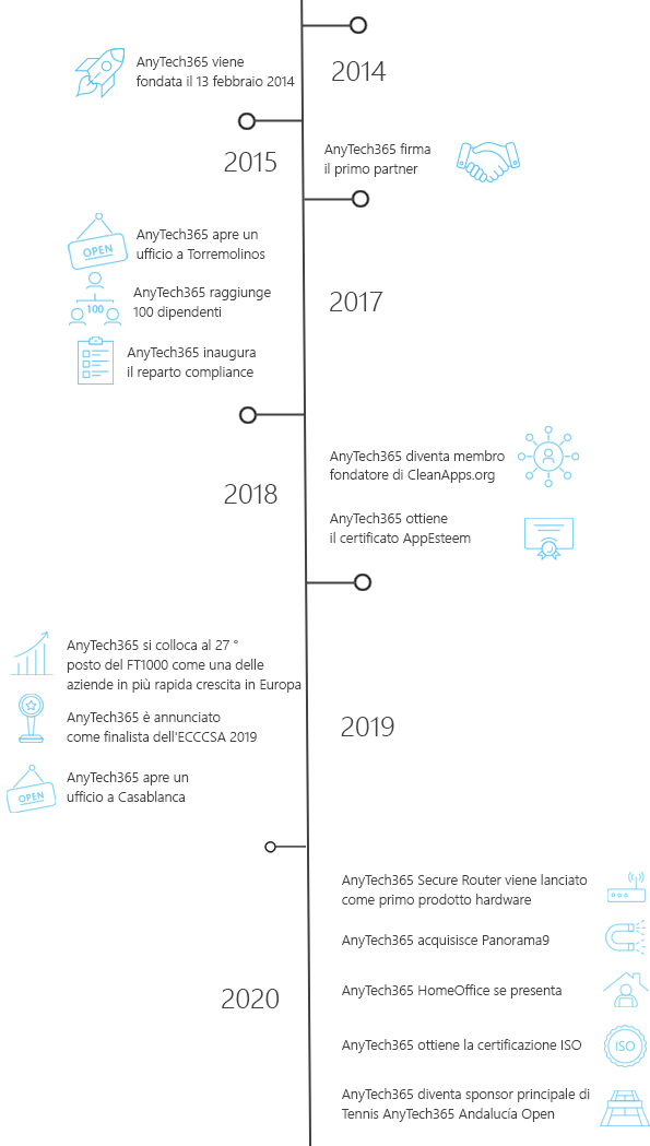 Oggi abbiamo circa 400 dipendenti ei nostri esperti IT madrelingua offrono supporto tecnico in più di 15 lingue. Nel 2019, Financial Times ha classificato AnyTech365 come n. 27 tra le prime 1000 aziende in più rapida crescita in Europa.